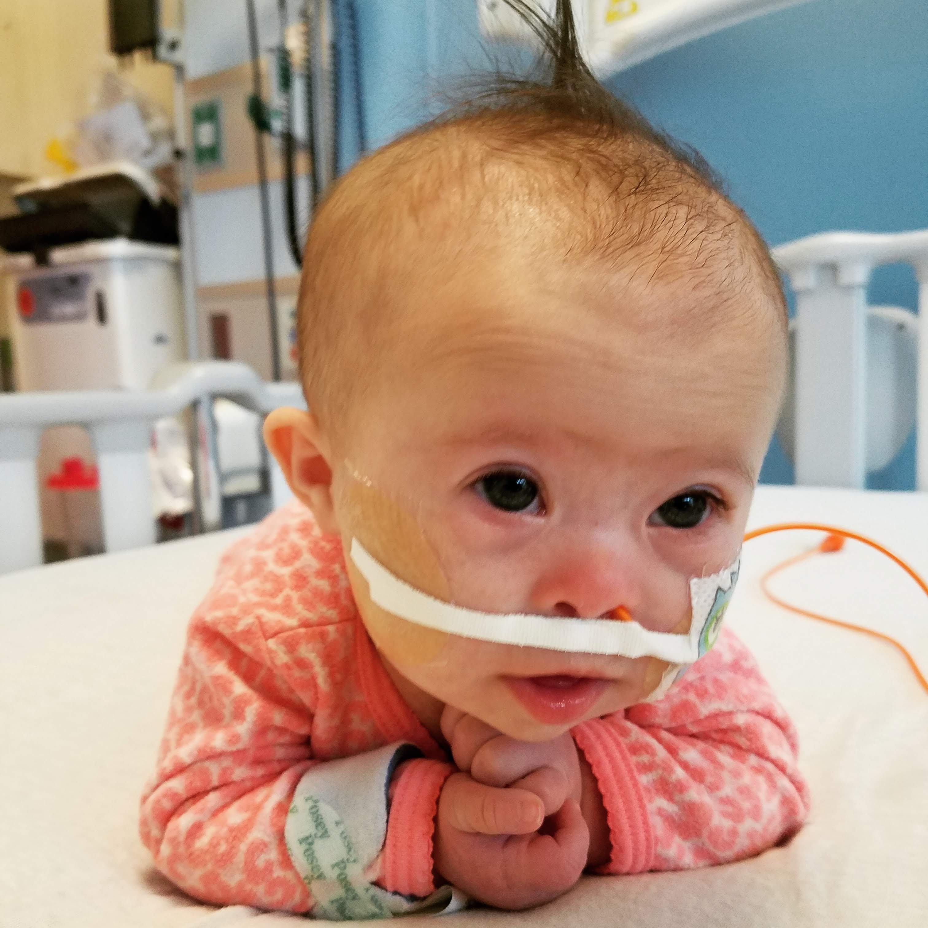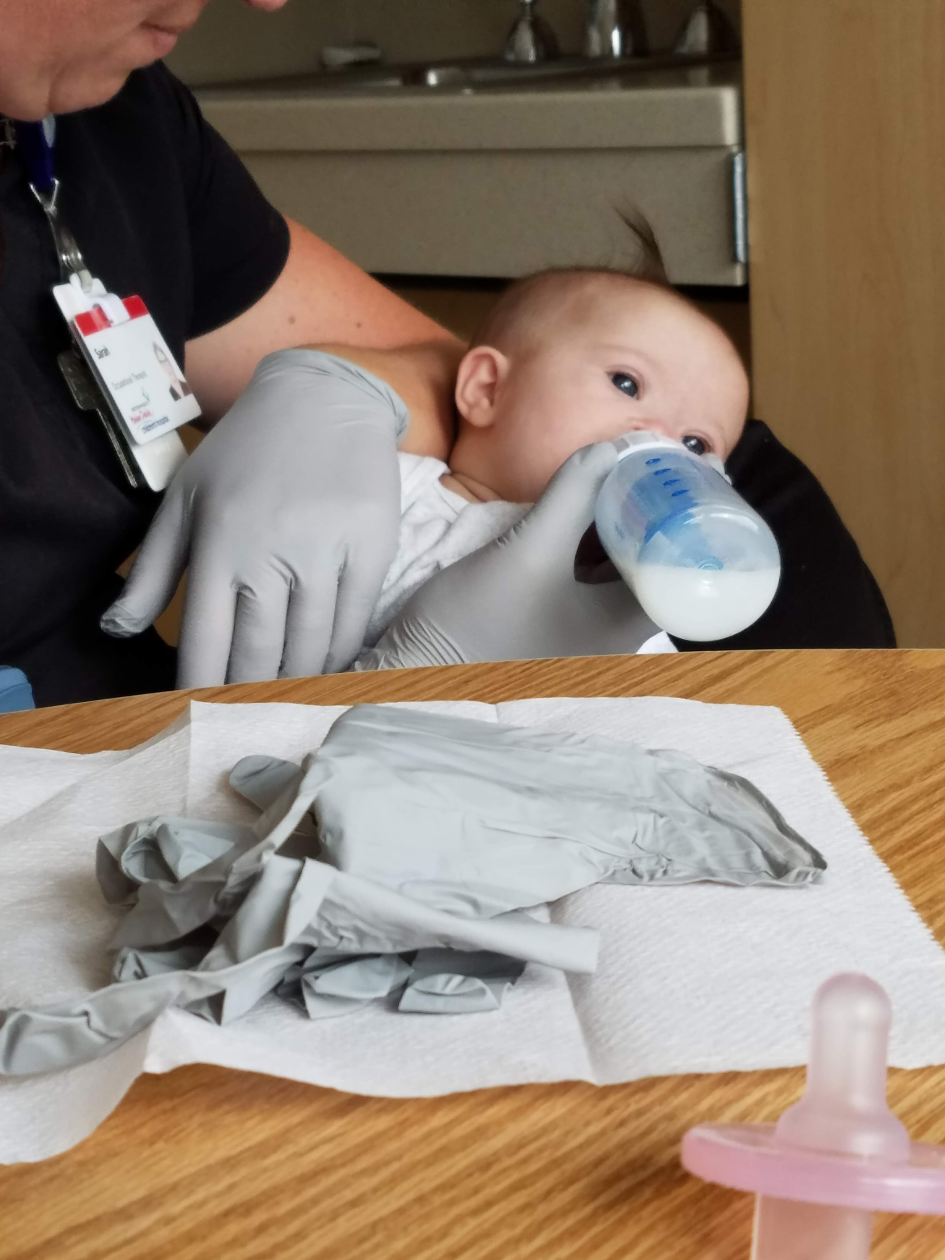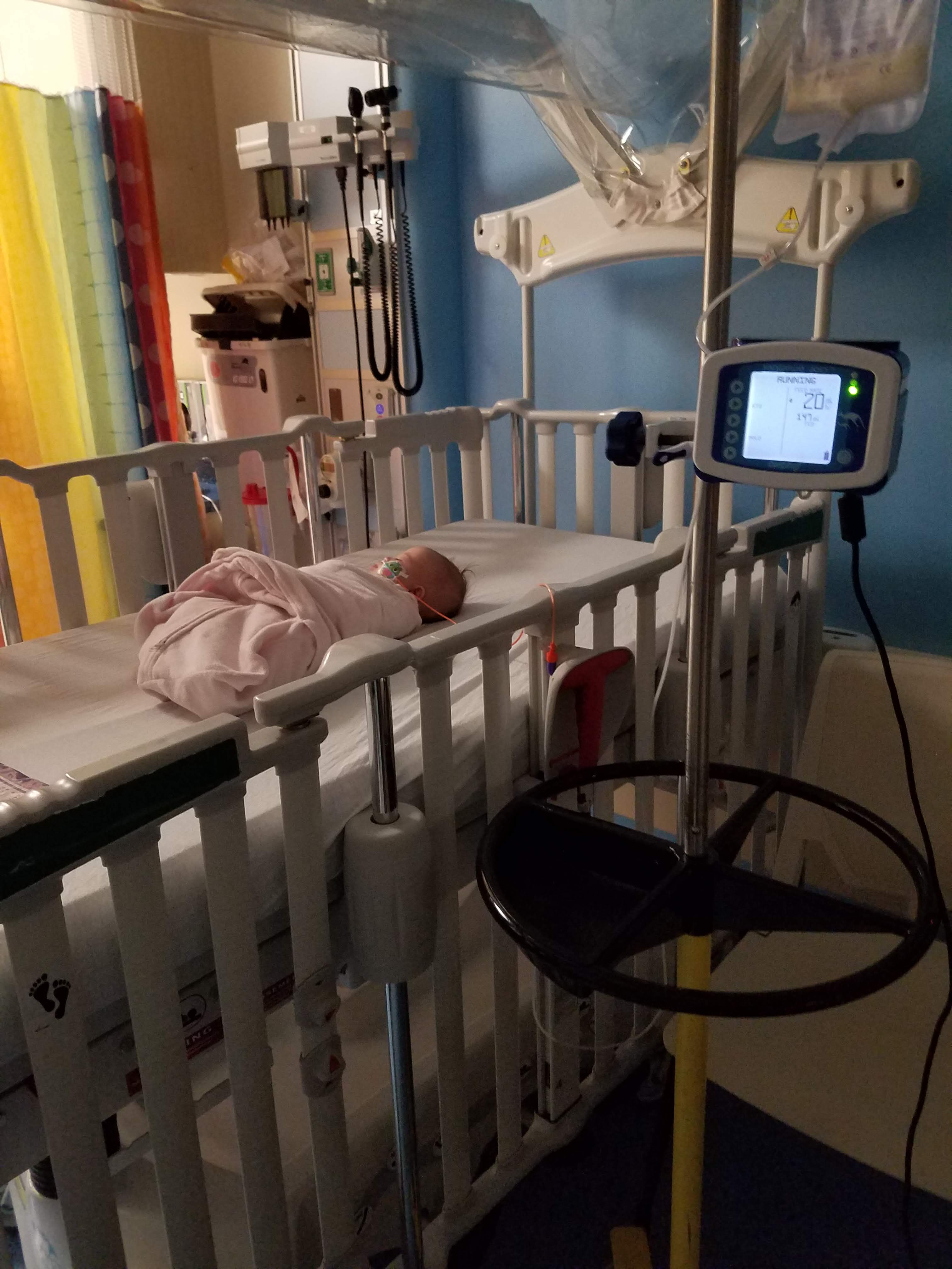 Our next step was to meet with the pediatric surgeon to discuss tube placement and hernia repair. He told us that he could do both during the same surgery, which was such a relief! Unfortunately, he told us that the anesthesiologists will not put a baby under anesthesia if they have recently been sick with an upper respiratory infection, which Ivy had just had. He said we would need to schedule it out 6 weeks. The big problem with that was that I was supposed to start teaching again because I had used all of my sick days for maternity leave. I couldn’t go back to teaching until she had a tube because she was not able to eat enough orally without me. As a teacher on maternity leave, I’m only paid for the sick days that I have accrued. Any extra days I took would be unpaid which cost a significant amount of money that we couldn’t afford to lose. He suggested that we have a tube placed through her nose to get us to the surgery date. So a few days later, Ivy and I traveled to Helen DeVos Children’s Hospital (which is luckily only 10 minutes away for us) for an overnight stay to get her nasal tube placed as well as some testing done.