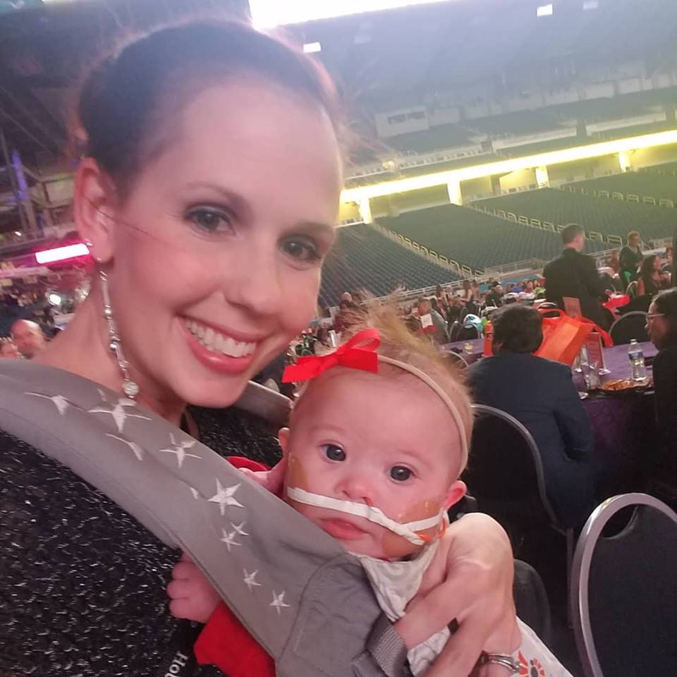 Once we got back to our room, the nurse hooked her tube up to a pump and added my breast milk to the pump bag. With a G tube in the stomach, you can give a ‘bolus’ feed which is several ounces at once like a ‘meal’ would be. Because the tube was going into her intestines which cannot hold that much without rupturing, she would need to be on continuous feeds. That means that for 20 hours of the day, milk would be slowly pumped into her tube and we were able to have 4 hours a day disconnected from the pump. We stayed at the hospital overnight because they started the feeds very slowly and throughout the day and night increased how much she was getting until she was at the goal of 24 milliliters per hour. Everything went smoothly, so we were discharged the next day with a whole new set of medical equipment. It was definitely a learning curve as we figured out how to attach and work the pump, carry the IV pole around the house, keep the tube out of her tiny hands, give medicine through the tube, and how much milk to put in at a time. The pump does a really fun beeping noise if something goes wrong (a sound that I’m pretty sure will haunt my dreams forever!) like a kink in the tube somewhere or if too much air gets in. We slowly learned!