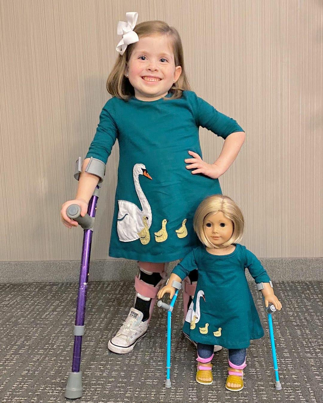 Eliza’s doll is from American Girl Doll as are her forearm crutches – https://www.americangirl.com/shop/c/doll-care-products